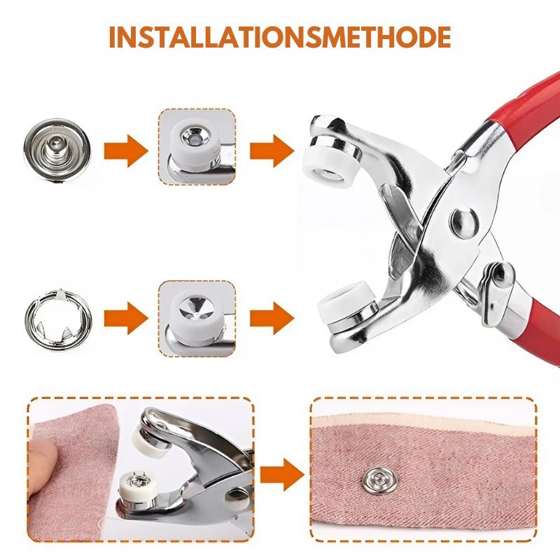 • Contenu de la livraison : boutons pression, 1 pince manuelle, 1 boîte de rangement