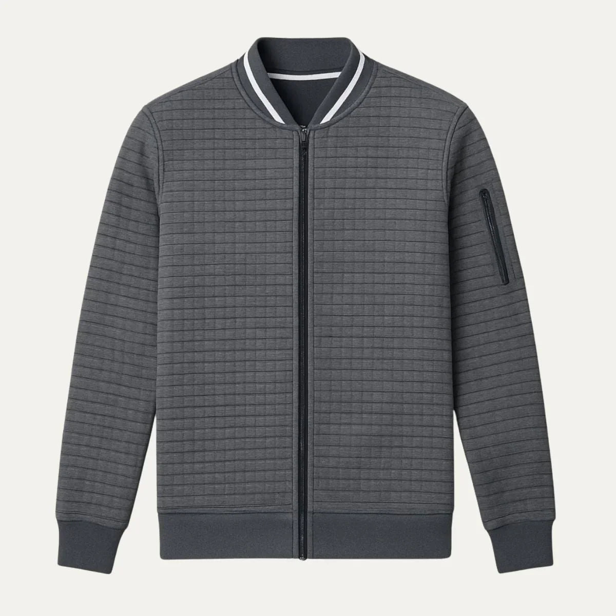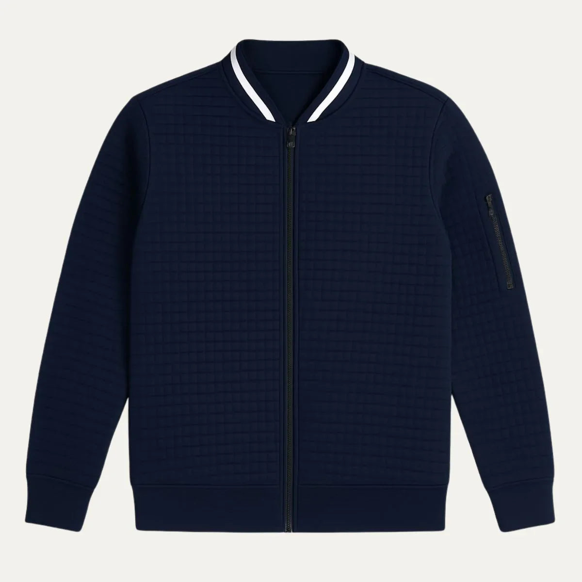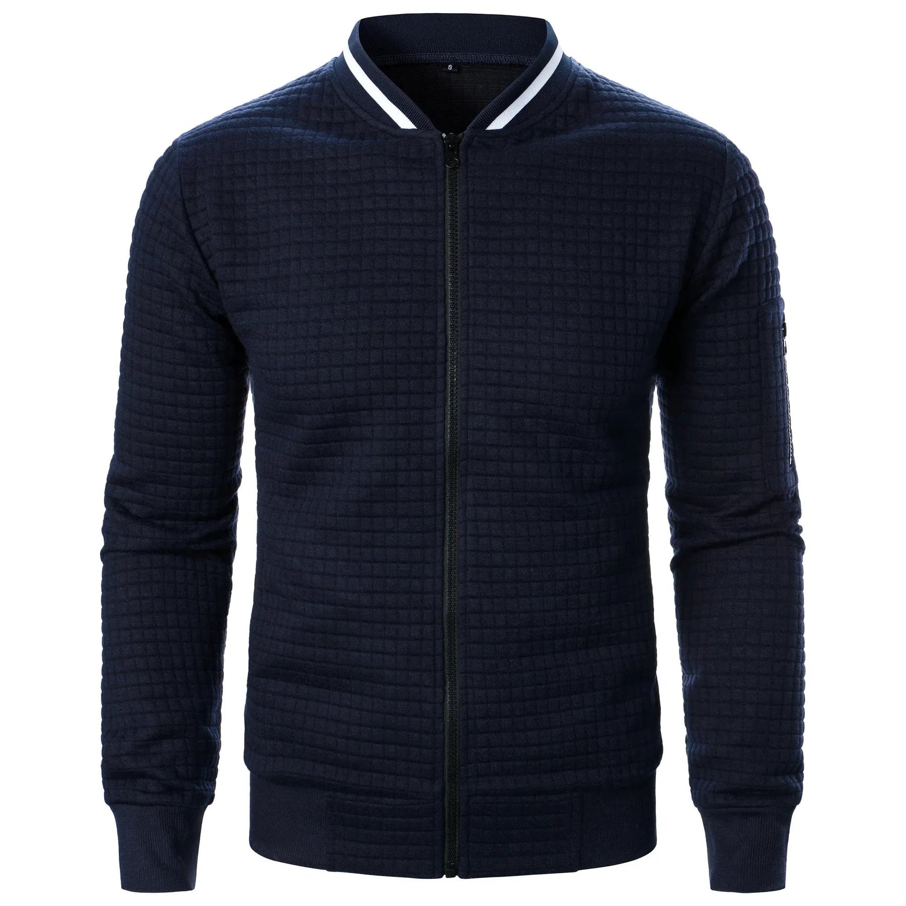 Ce cardigan léger présente une coupe ajustée et une texture subtile à carreaux, parfait pour toute occasion, que ce soit pour le bureau, une promenade le week-end ou une soirée décontractée. La fermeture zippée à l'avant et le col montant ajoutent une touche de raffinement, garantissant un look soigné et confiant.