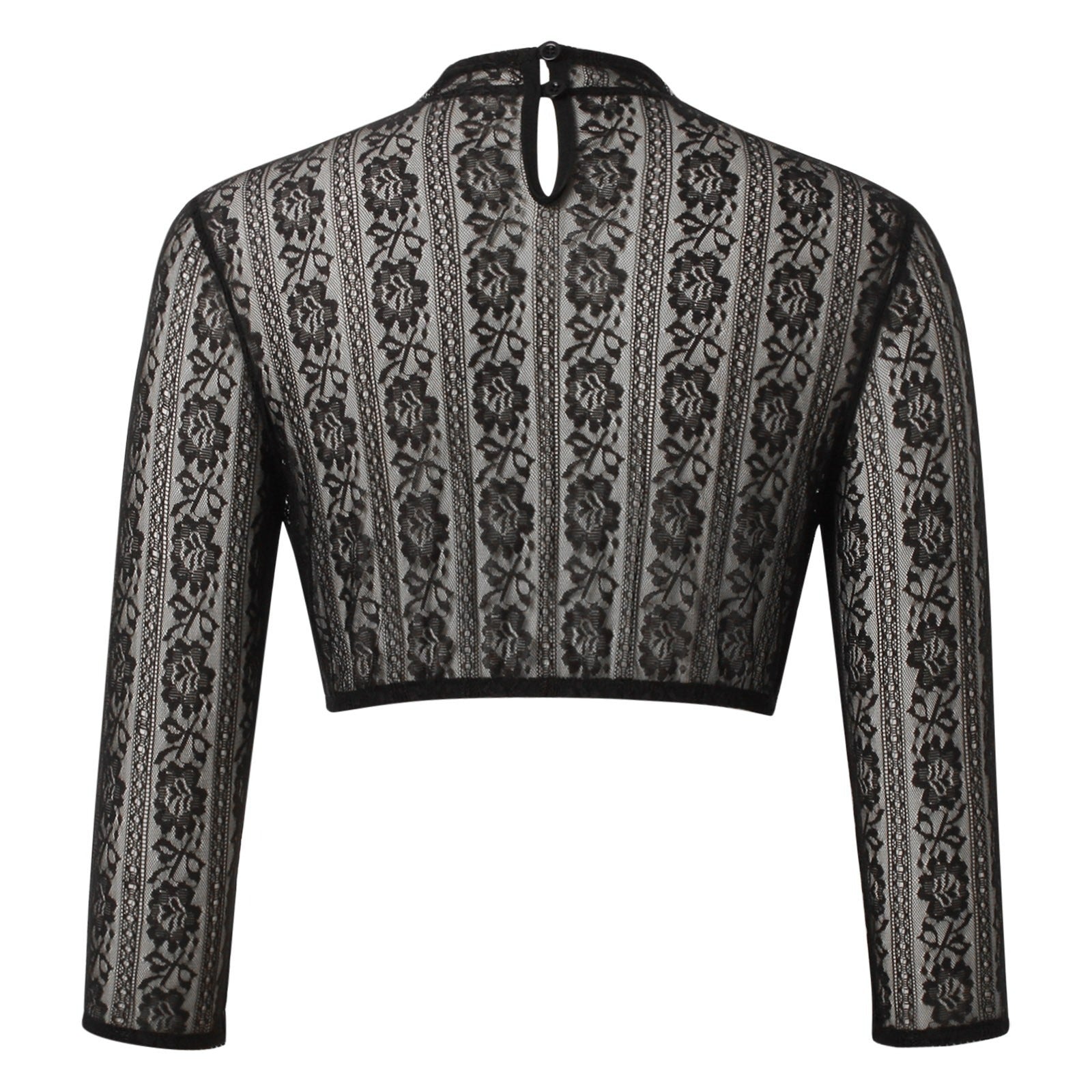 Ce chemisier de dirndl noir avec dentelle est le choix parfait pour ajouter une touche d'élégance à votre tenue traditionnelle. Son design court et ses détails en dentelle transparente vous permettront de vous sentir féminine et raffinée lors de vos événements festifs.