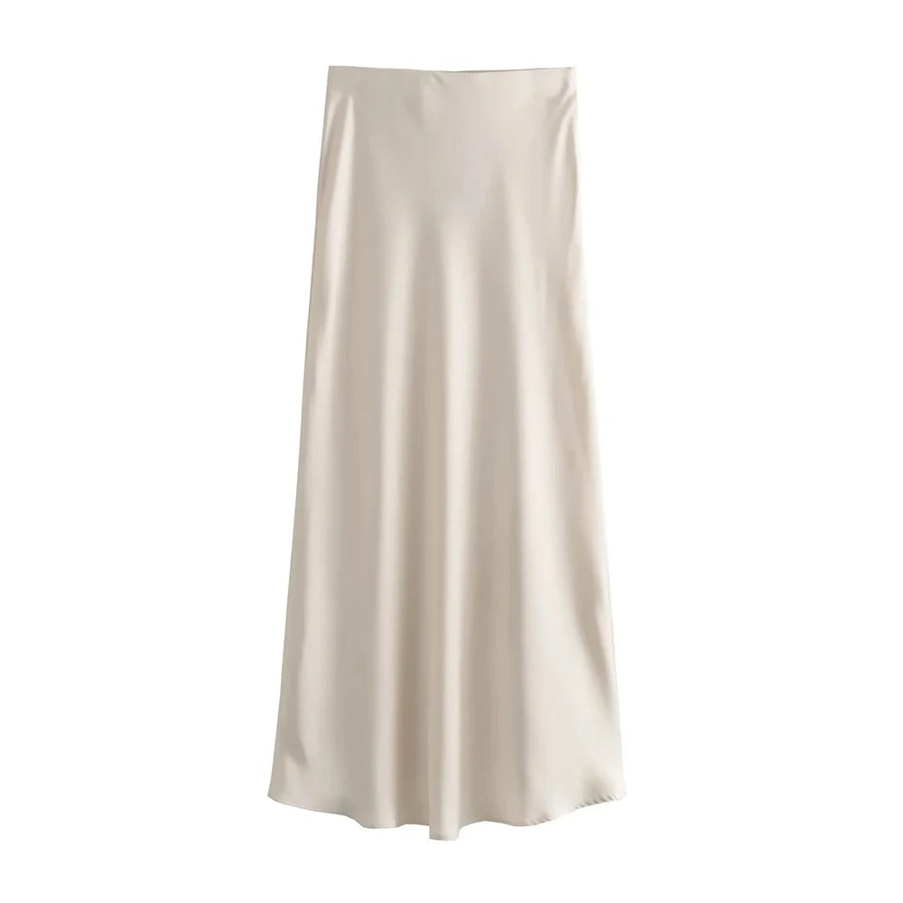 JUPE MIDI FLOTTANTE EN SATIN POUR FEMME – STYLE DÉCONTRACTÉ ET CONFORT